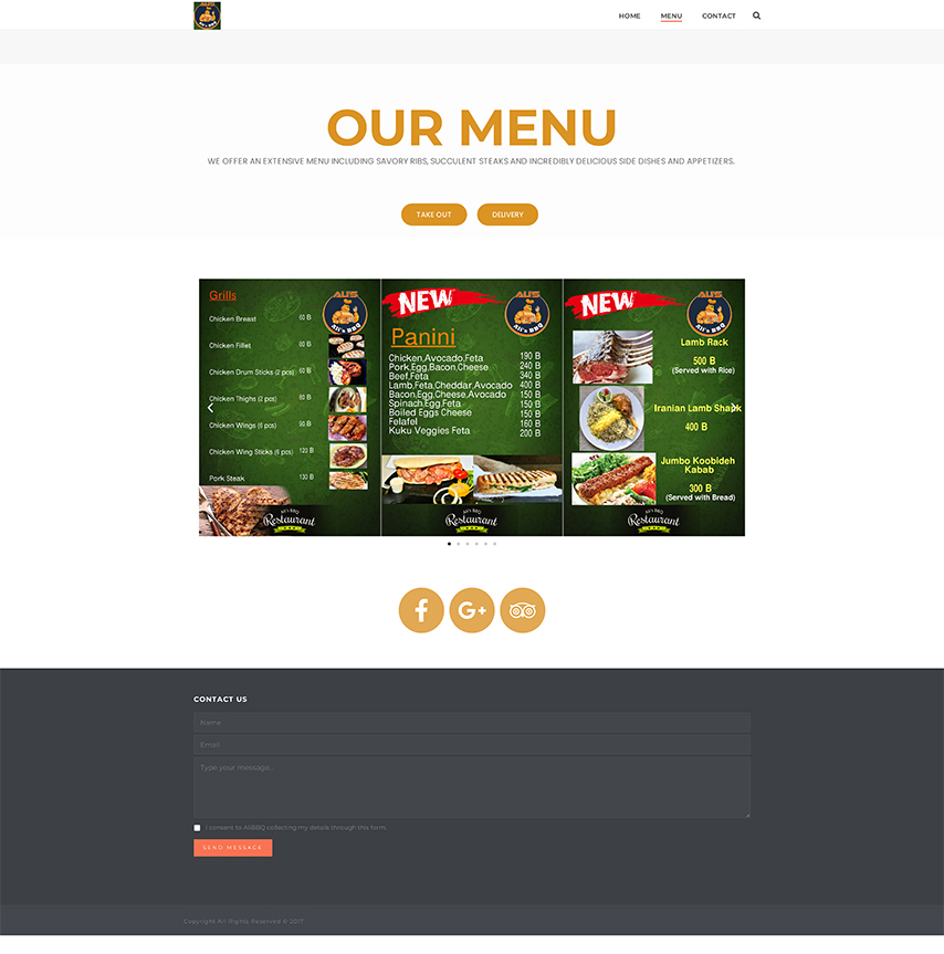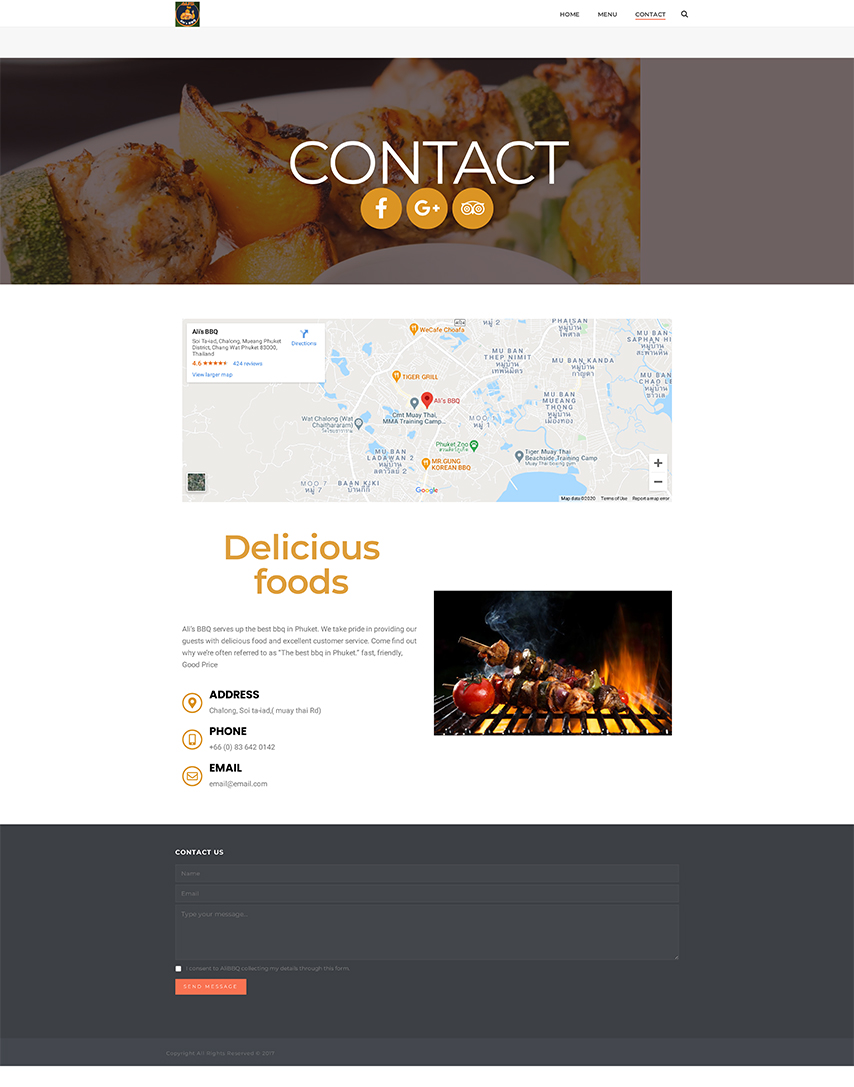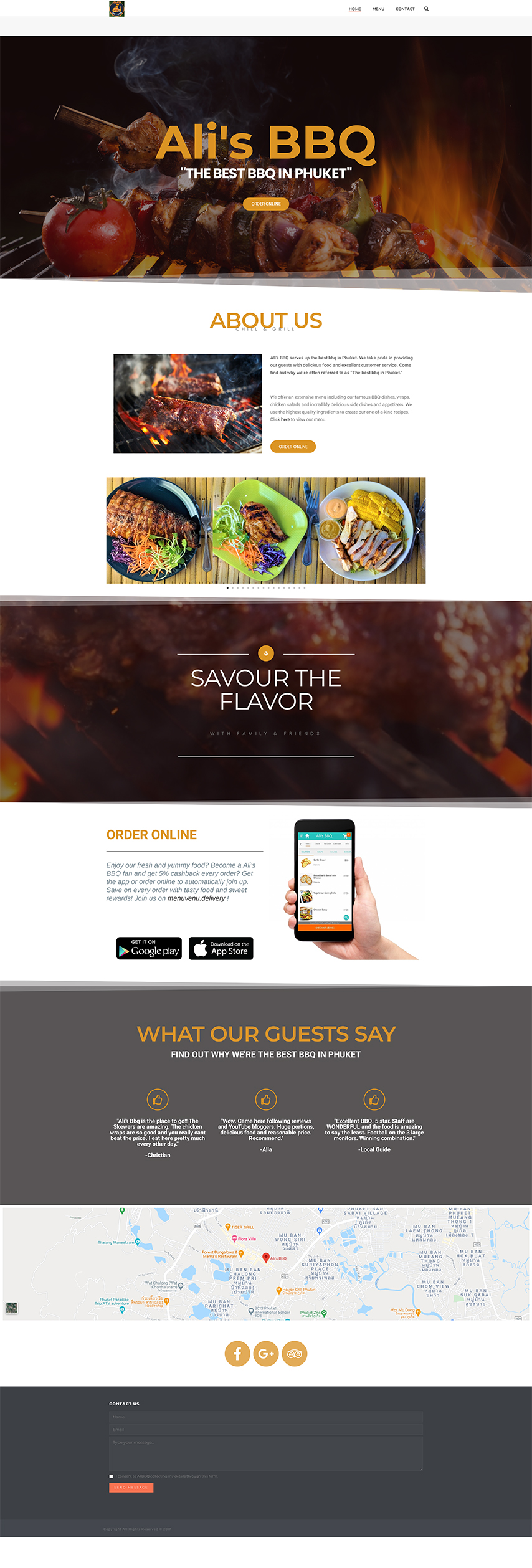 Home Portfolio Services Graphic Design Web Design Marketing Request a Project Contact Menu Home Portfolio Services Graphic Design Web Design Marketing Request a Project Contact Ali's BBQ Ali's BBQ is a restaurant located in Phuket, Thailand and serves up some of the island's best barbecued meats and international dishes. This project was commissioned through Menuvenu and included information infrastructure and full website design. Learn More ALI'S BBQ DETAILS www.AlisBBQphuket.com OTHER CLIENTS REQUEST A PROJECT Let's bring your ideas to fruition REQUEST A PROJECT MENU Home Portfolio Services Graphic Design Web Design Marketing Request a Project Contact Menu Home Portfolio Services Graphic Design Web Design Marketing Request a Project Contact SERVICES WEB DESIGN GRAPHIC DESIGN MARKETING REQUEST A PROJECT INSTAGRAM 😇BitAngels…⚽️👕Custom… CONNECT Instagram Facebook Whatsapp Copyright Designed By Robert, All Rights Reserved © 2020